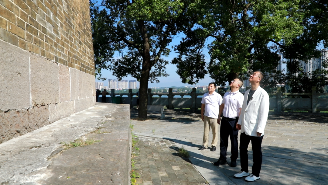 华红兵一行首先来到北塔公园,张龚向他详细介绍“国保”文物北塔的修建历史与文化价值以及未来规划。他建议,可结合新媒体传播手段,将北塔的古塔文化、沿江风光与产业特色串联成“可感知、可传播”的城市IP,通过短视频、直播等形式扩大区域知名度,吸引更多资源关注北塔发展。
