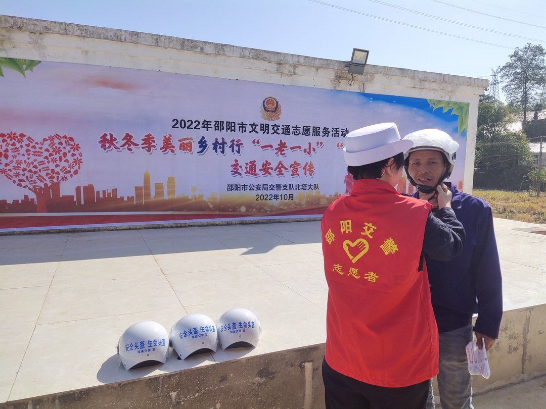 10月13日上午,北塔交警大队文明交通志愿者来到了美丽的田庄村,结合交通事故预防“减量控大”、交通问题顽瘴痼疾集中整治等行动,开展秋冬季美丽乡村行“一老一小”“一盔一带”交通安全宣传活动,传递平安出行理念,倡导群众文明出行。
