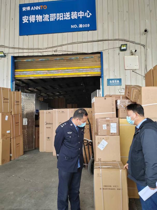 宣讲结束后,尹强和政法委负责人一起查看了物流公司车间,详细询问了工作人员寄递货物相关细节,并提醒其需要注意和防范的重点环节。
