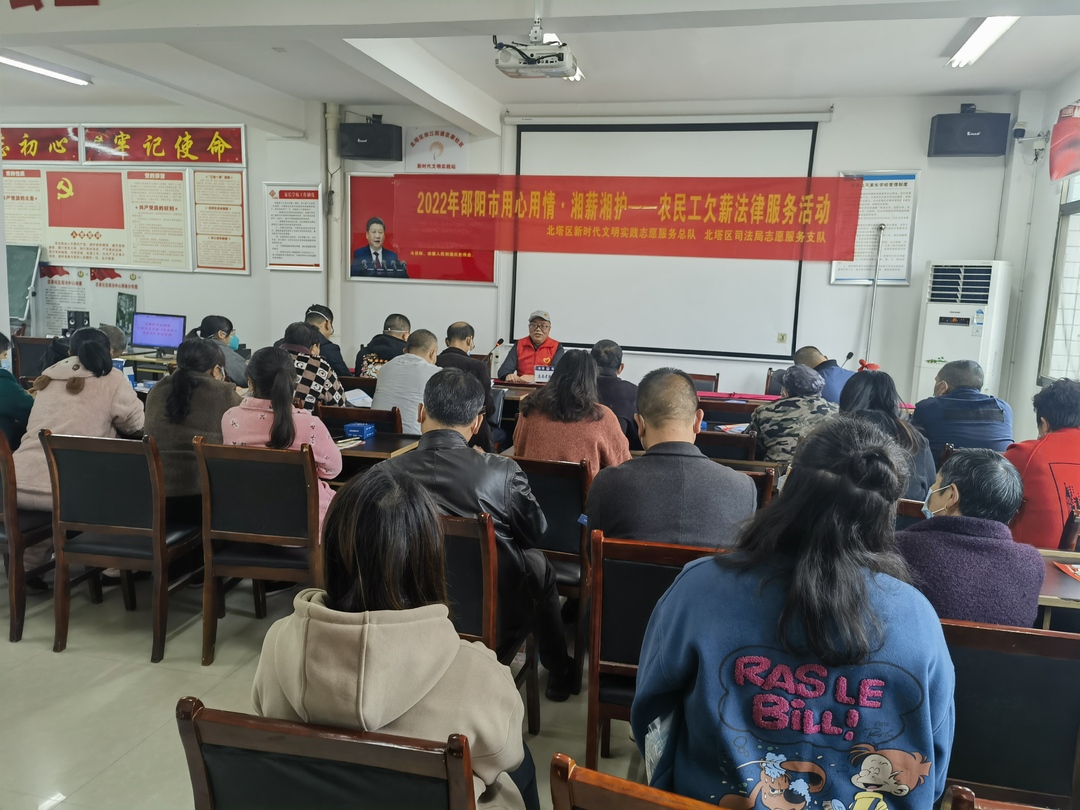 融媒体中心消息 为持续巩固根治欠薪工作成果,维护社会大局和谐稳定,11月25日,北塔区司法局进匡家社区开展了“用心用情·湘薪湘护”——农民工欠薪法律服务活动。