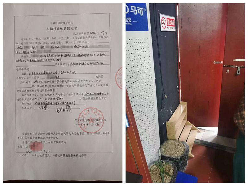 11月25日,该店负责人在北塔消防大队签收了《行政处罚决定书》,在执法监督人员的教育下,负责人深刻意识到错误,并表示将立即进行整改。11月29日,执法监督人员在复查中发现,该图书公司已整改到位。