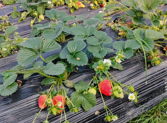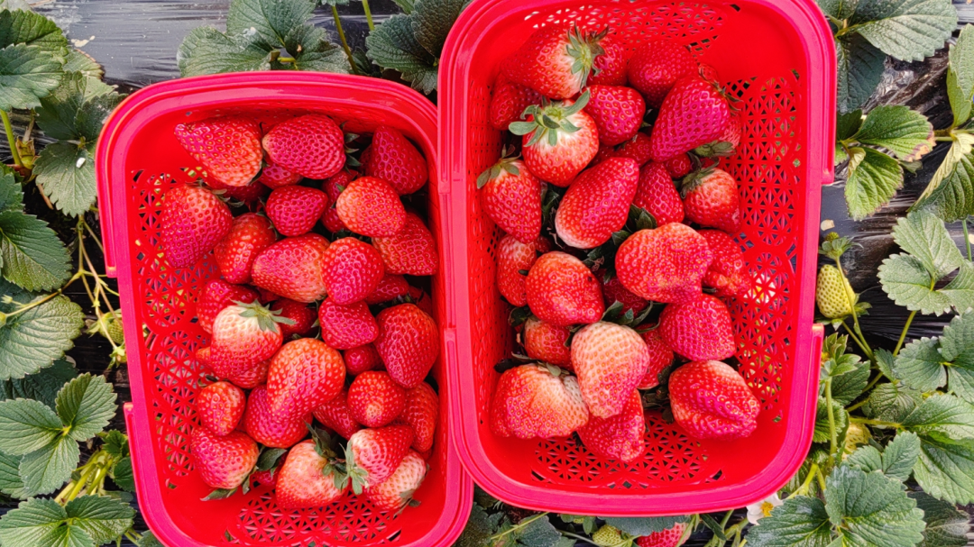 走进草莓大棚,扑面而来的是草莓的清香,一颗颗色泽鲜艳的草莓在绿叶映衬下,格外诱人。前来采摘的游客穿梭其间,一边体验田园生活和收获的乐趣,一边将个大饱满成熟的草莓逐一采摘下来。