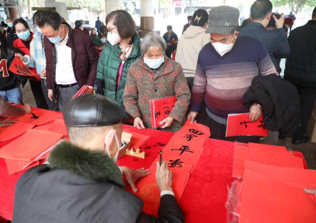 现场赠送春联、福字2000余幅。本次活动从12月初筹备,通过内容创作、春联书写、作品拍摄排版、印刷包装,共制作印刷版春联1.2万幅,随后,将通过区直机关、镇(街道、园)向市民发放。红红火火的春联满载着平安吉祥的祝福,为即将到来的新春佳节增添了浓浓年味。